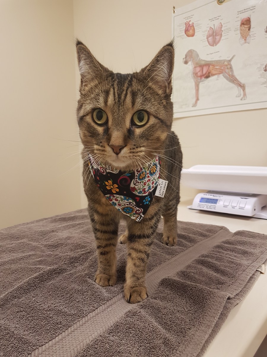 20170908_125506 Published: September 14, 2017Full size: 3024 × 4032Attached: Fighting Feline Dental Issues! « » Visiting Dr. Foster, dressed in her best bandana! Share this: Click to email a link to a friend (Opens in new window) Email Like Loading...